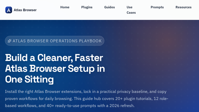 In today's fast-paced digital environment, users face the dual challenge of maintaining privacy while maximizing productivity while browsing. Many users remain unaware of how to effectively set up their browsers for optimal performance and security, often resulting in cluttered setups and vulnerabilities to online threats. Furthermore, the lack of role-specific resources makes it challenging for individuals to adopt efficient workflows tailored to their specific tasks, whether they are coding, content creation, or research. The Atlas Browser Setup & Extension Optimization Hub aims to solve these problems by providing tailored resources that facilitate a seamless setup and encouraging best practices for privacy and efficiency.