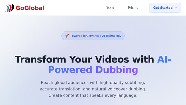 GoGlobal is an innovative platform leveraging advanced AI technology to transform video localization, simplifying the process of dubbing and translating content for global audiences. The platform offers seamless tools for generating subtitles, syncing them accurately, and providing multi-language dubbing with human-like voice characteristics. By supporting over 50 languages, GoGlobal empowers content creators—ranging from YouTubers to brands—to expand their reach without sacrificing quality. With an emphasis on emotional resonance and cultural authenticity, the platform’s AI-driven solutions provide studio-quality results in under 30 minutes. The integration capabilities with major platforms, comprehensive support systems, and a clear revenue-sharing model make GoGlobal not only a powerful tool for content creators but also a growth engine for maximizing their monetization potential. This project aims to further enhance these offerings, delivering additional features that enhance usability and scalability, while solidifying its position as a leader in the video localization market.