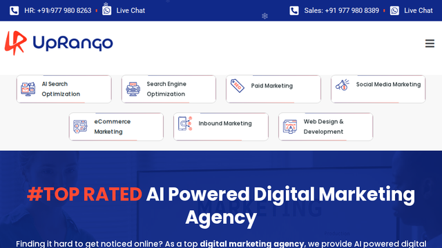 UpRango, a top digital marketing agency in India, specializes in innovative AI-driven marketing solutions that significantly enhance brand visibility, engagement, and overall business growth. Harnessing the power of advanced technologies, UpRango provides a wide array of services including Search Engine Optimization (SEO), Pay-Per-Click (PPC) advertising, lead generation, content marketing, social media marketing, and reputation management. The agency's commitment to data-driven strategies ensures that their clients reach the right audience and achieve measurable results effectively. With proven methodologies that have produced successful outcomes across various industries such as healthcare, e-commerce, and technology, UpRango positions itself as a vital partner for businesses seeking to thrive in the competitive digital landscape. The vibrant and collaborative culture at UpRango fosters creativity and innovation, allowing its team to continuously create tailored marketing solutions that meet the unique needs of each client. As businesses increasingly rely on digital marketing, UpRango’s emphasis on AI technologies positions it favorably to leverage future market trends and consumer behaviors. By focusing on measurable growth metrics and maintaining positive client relationships, UpRango aims to expand its impact and innovation capacity on a global scale.